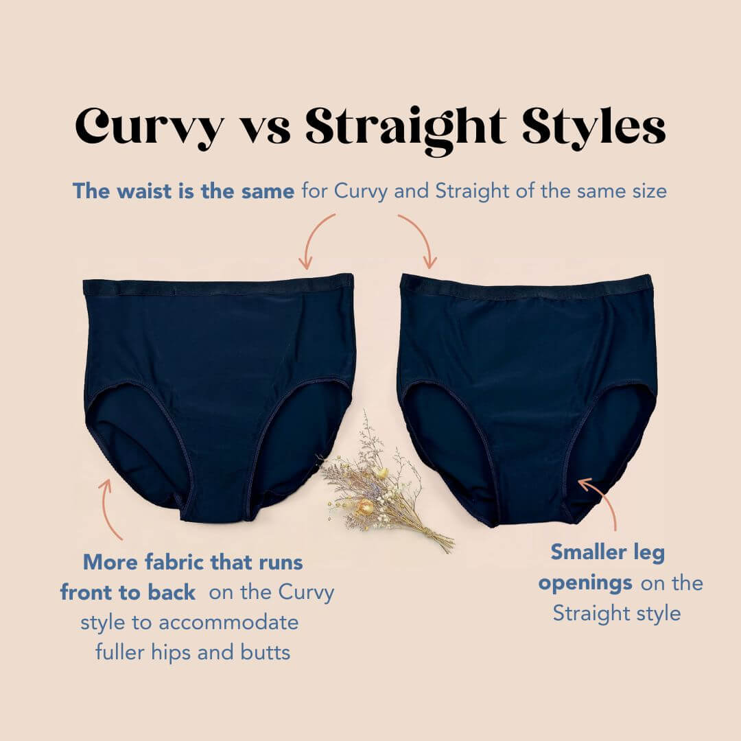 Your butt shape will determine whether our Straight or Curvy style will fit you best. Use the above image to see which shape most closely matches yours.