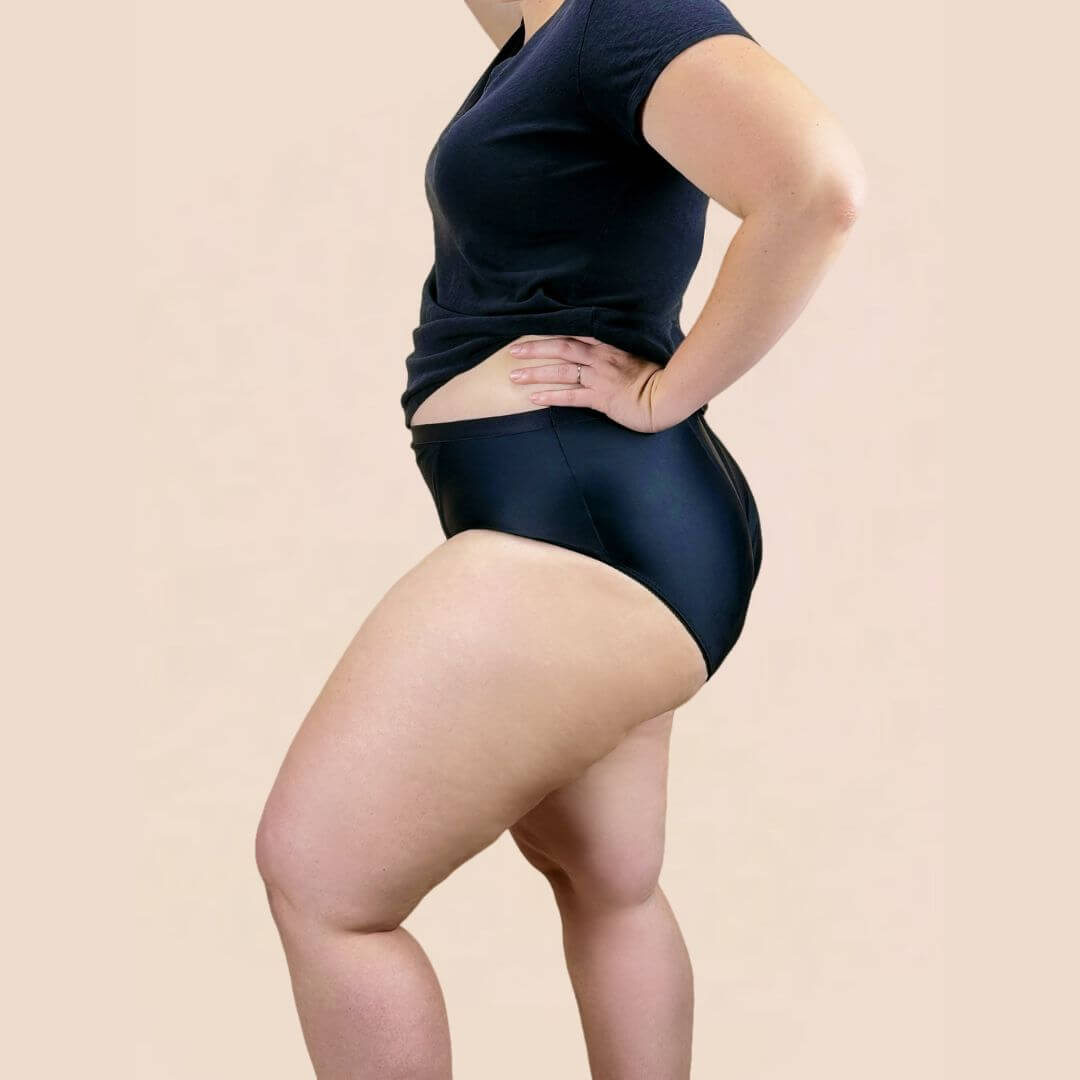 Designed to fit like your favorite underwear, the garment sits smoothly under clothing—so you can dress for your day without worry or bulk.