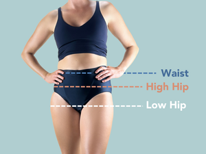 Grab a measuring tape and measure yourself in three key areas: waist, high hip, and low hip.